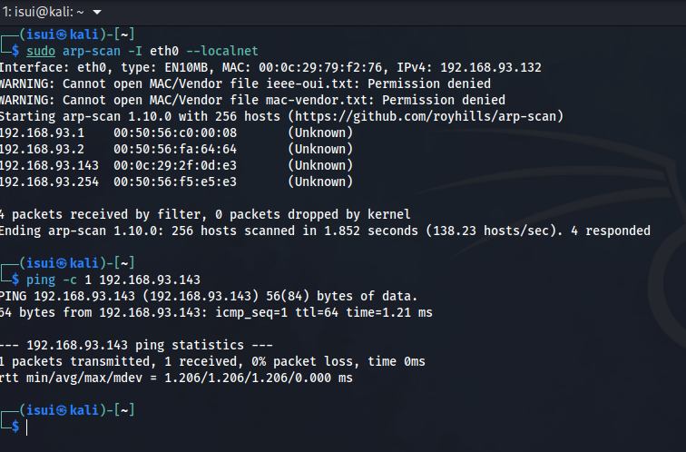 64 bytes from 192.168.93.143: icmp_seq=1 ttl=64 time=1.21 ms