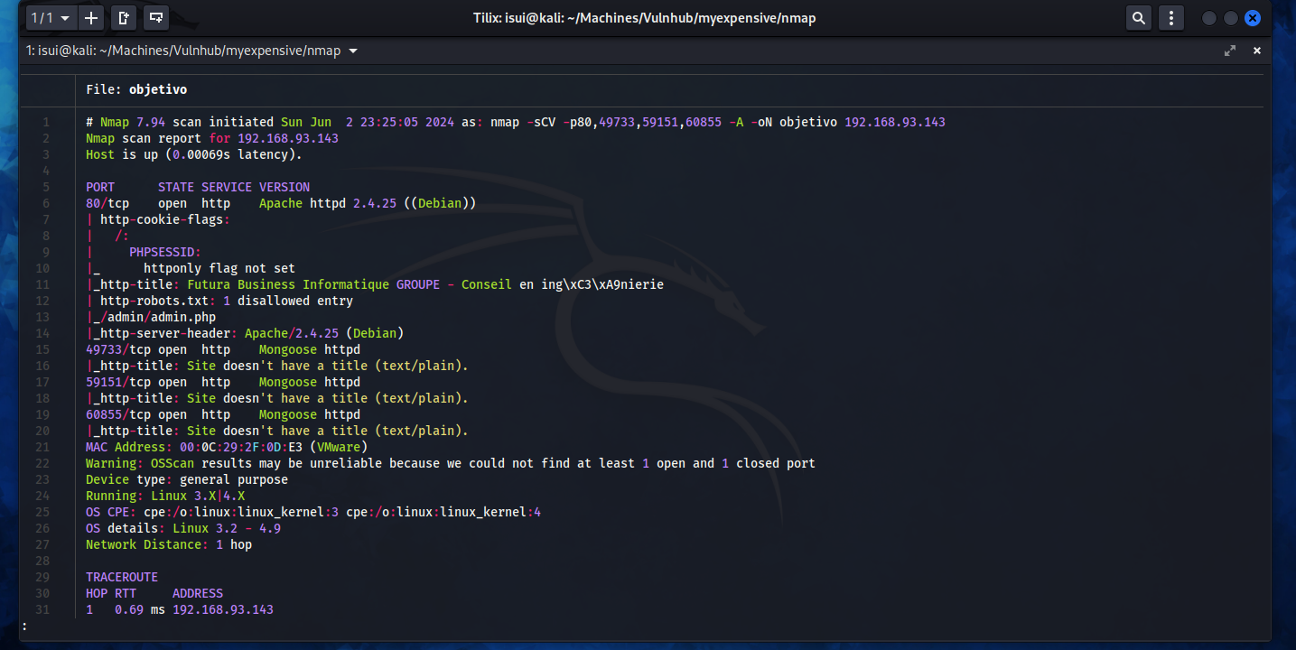 sudo nmap -sCV -p80,49733,59151,60855 -A 192.168.93.143 -oN objetivo