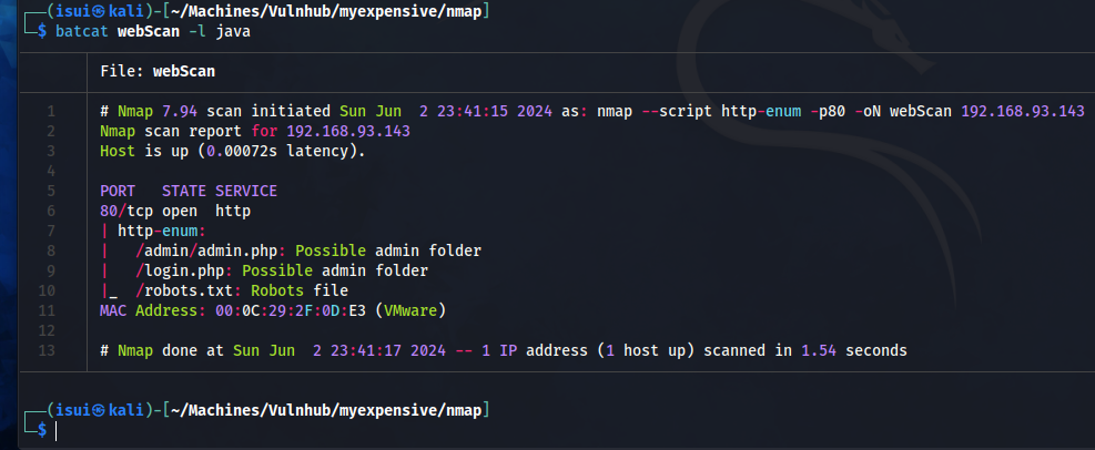 sudo nmap --script http-enum -p80 192.168.93.143 -oN webScan