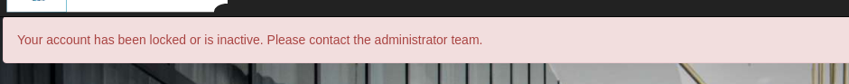 La validación de las credenciales parece ser correcta, pero indica que la cuenta ha sido bloqueada o inhabilitada por los administradores:
