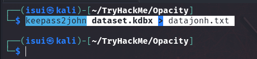 Para intentar crackear la contraseña del archivo Keepass, lo primero es convertir el archivo a un formato que John pueda entender: